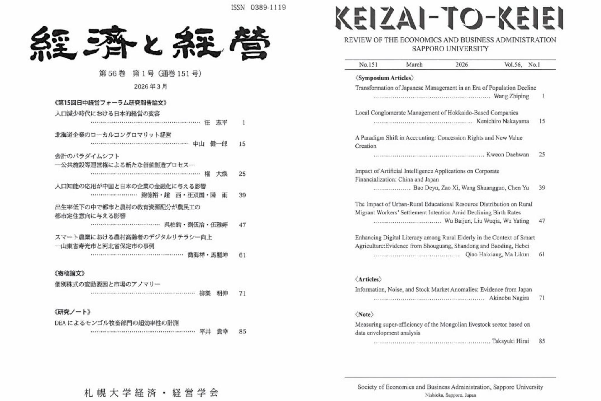 日本《经济与经营》刊发财经学院乔海祥教授论文