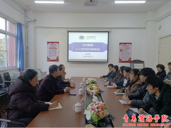 2026年1月13日14:30,财经学院联合国际交流与合作处在雍德楼B202组织召开2024级赴俄“2+2”双文凭合作项目推进会。出席本次会议的有财经学院乔海祥院长、国际交流与合作处乔世葆处长、李颖健老师和赴俄班主任闫珍珍老师及2024级数字经济(赴俄)班全体同学,会议由乔海祥院长主持。