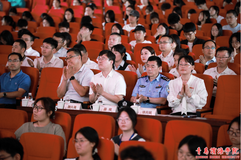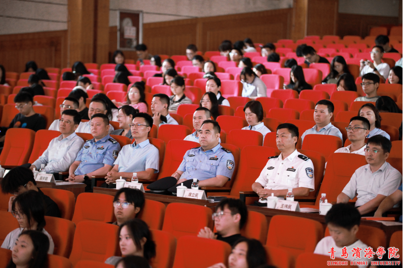 同时,活动还设置了丰富的互动环节。青岛市公安局黄岛分局刑侦大队三级警长胡铭带来的公安反诈宣讲,结合真实案例,为同学们揭露了各类诈骗手法;青岛市公安局黄岛分局“长江中路357”乐队的反诈歌曲表演,用潮流音乐传递反诈理念;中国银行青岛西海岸新区分行综服经理黄梦婷的金融宣传,围绕信用卡使用、个人信息保护等内容展开专业讲解。