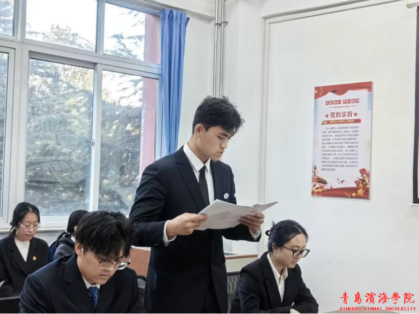 大会在庄严的《国际歌》中拉开了帷幕。首先,由徐毓馨、陈闯、毛远康、丛嘉哲、薛伟鸣、丁方刚、任清雯、胡鑫泽八名同志宣读了入党志愿书。八名同志分别就入党积极分子考察期内的经历和感悟向党组织作了深刻汇报。他们向党组织重点汇报了个人基本情况、入党动机、对党的认识以及对党的决心等,表达了自己对党的忠诚和作为发展对象主动向党组织靠拢的强烈意愿。