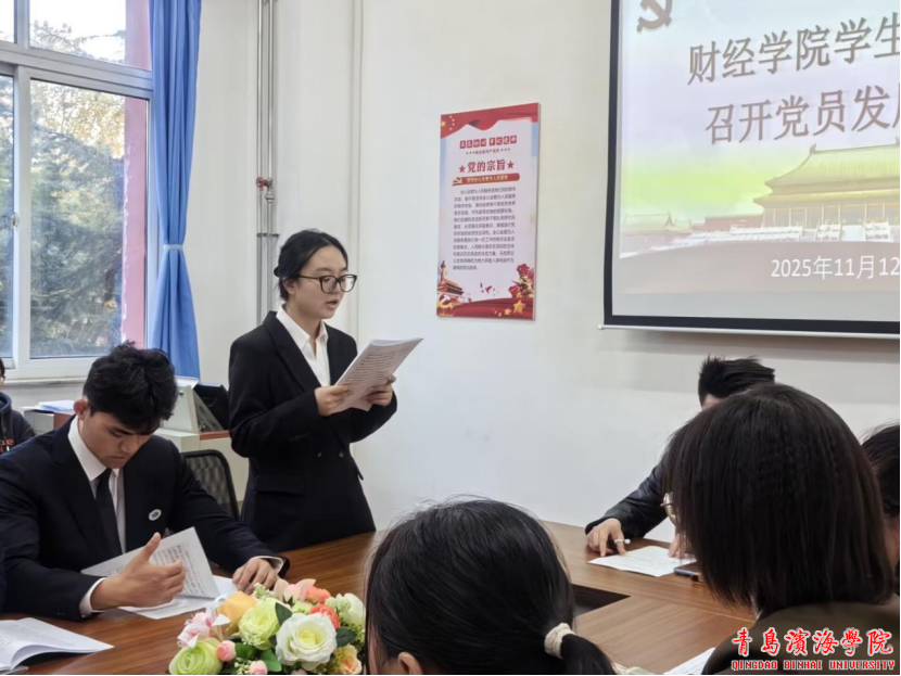为进一步扩大党员队伍,培养优秀党员,财经学院学生党支部于2025年11月12日16:10在雍德楼B202会议室召开了党员发展大会。本次大会由财经学院学生党支部书记伊鑫同志主持,彭婷如、任萍、蔡浩然同志为计票人、监票人。