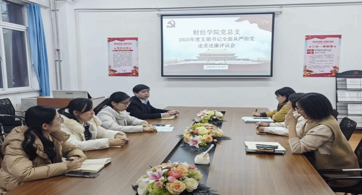 为深入贯彻落实学校党委关于全面从严治党的工作部署,压紧压实基层党支部书记“第一责任人”职责,推动党建与专业建设深度融合,2026年1月16日下午4:20,财经学院党总支在雍德楼党员活动室,召开2025年度支部书记全面从严治党述责述廉评议会。会议由党总支书记乔海祥主持,师生支部班子成员参加。