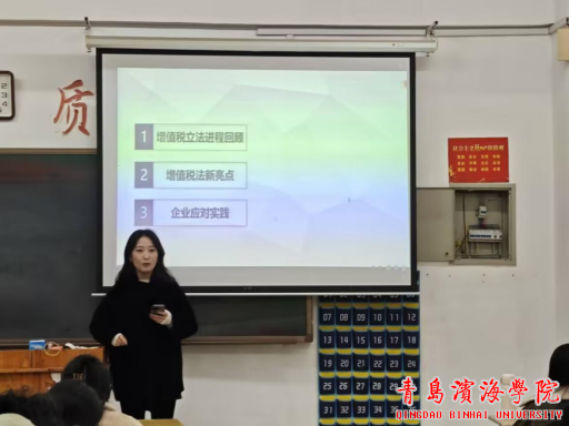 首先,王楠老师梳理了增值税的发展历史。用时间轴一路讲下来,从改革开放刚开始试行,到1993年分税制改革奠定基础,再到2016年“营改增”把服务业全部纳入增值税范围,一直到2026年1月1日正式立法,整个脉络讲得清清楚楚,让同学们对税制改革的过程有了更完整的理解。接着,王楠老师重点解读了2026年新增值税法的亮点:计税规则怎么区分;免税项目重新梳理后哪些能免、哪些不能免;法律加强了纳税人权益保护;甚至把“劳务”改成了“服务”,术语更规范,也更好理解。在实务应用部分,她讲了很多能直接用到的规则。比如混合销售怎么判断税率、买服务还是无形资产怎么判断境内还是境外、视频销售有哪些新变化、简易计税有3%、1%、5%等不同档次。最后,王楠老师给大家普及了官方查询渠道:12366热线和国家税务总局官网,遇到税务问题都可以随时查阅和咨询。